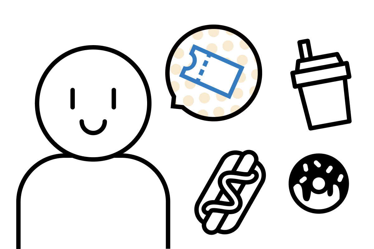 (特典の例:ビールやソフトドリンク1杯無料、おひとり様限定メニュー など)