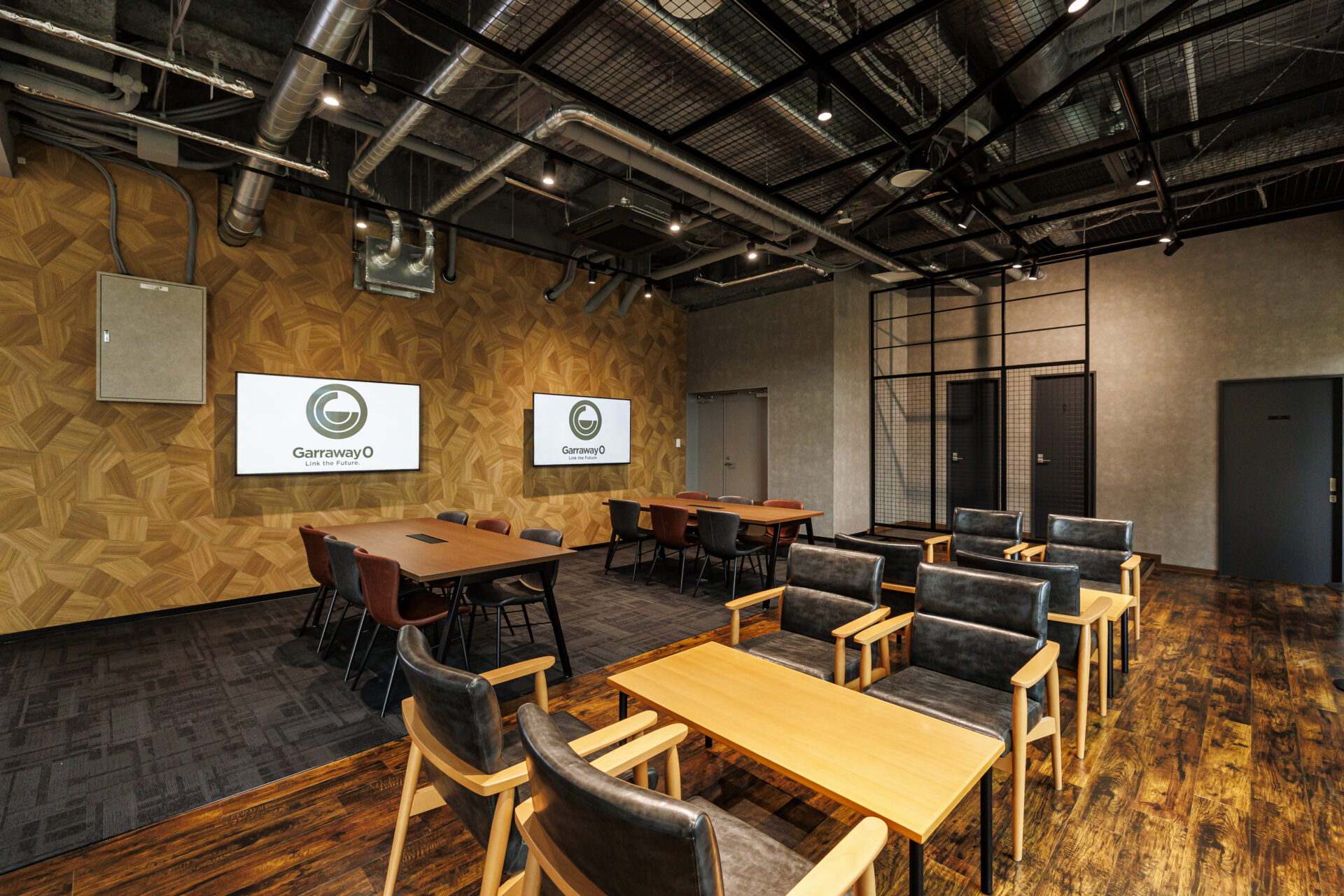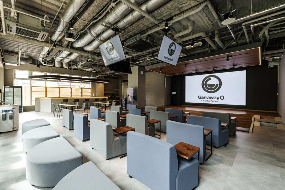イベントやミーティングに合わせて家具は、自由にレイアウト変更可能。中央には舞台、200インチLEDスクリーン、音響設備を完備し、プレゼンやセミナーにも対応。仕事と交流を両立できる新しい拠点です。